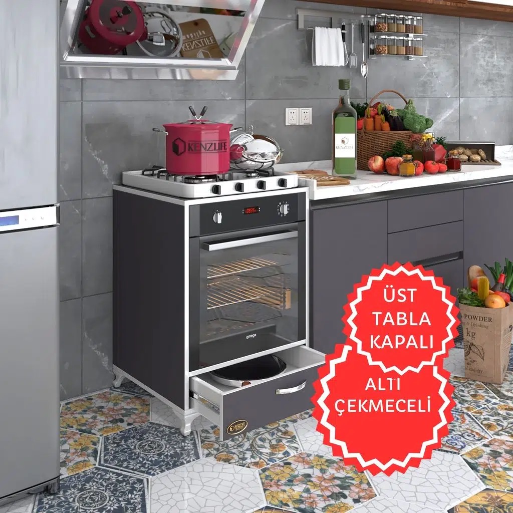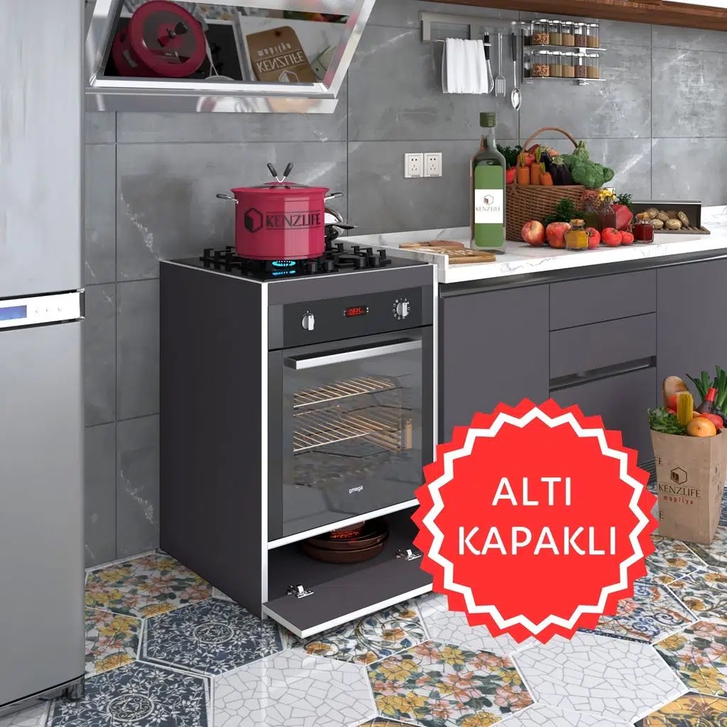 Kenzlife ankastre modülü kabini azot gri fırın ocak dolabı çekmeceli ayaklı sabit tabla