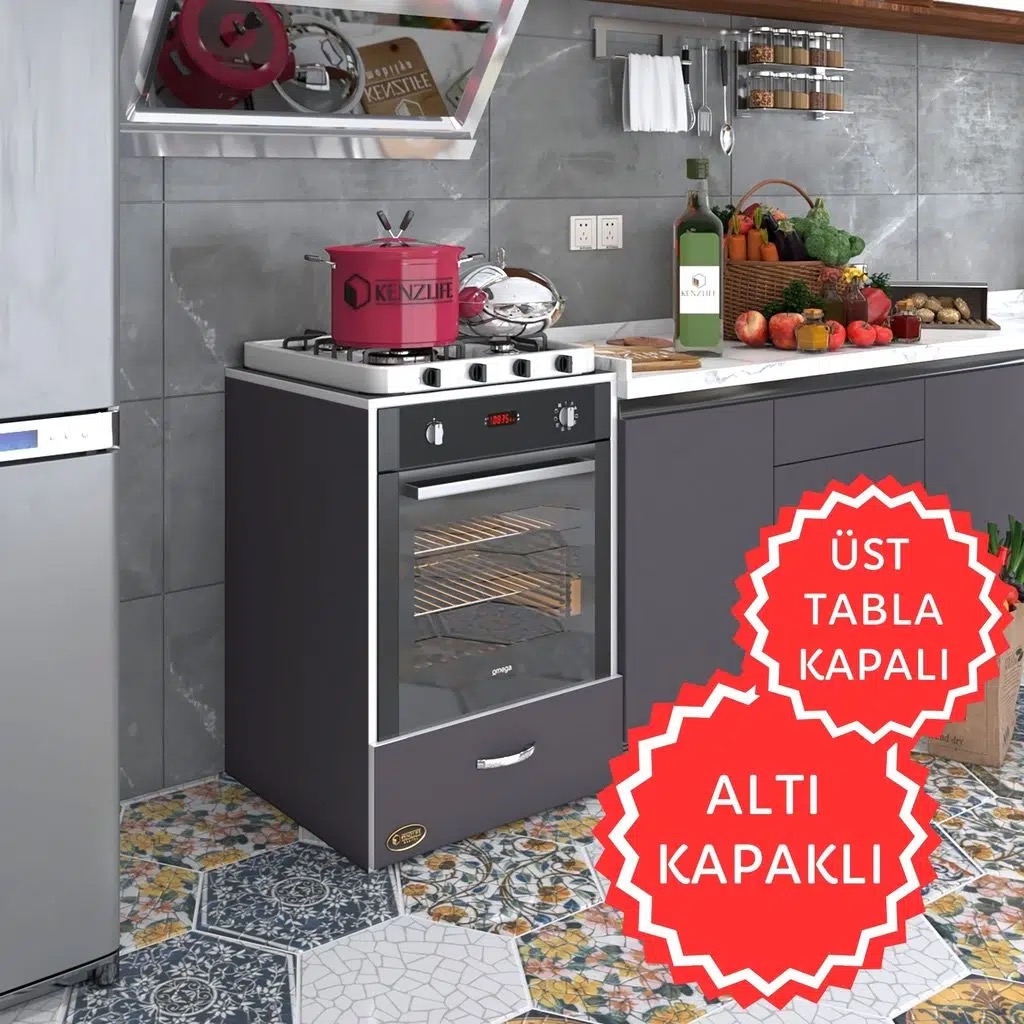 Kenzlife ankastre modülü kabini erbiyum gri fırın ocak dolabı özel boy ayarlı ayaklı kapaklı