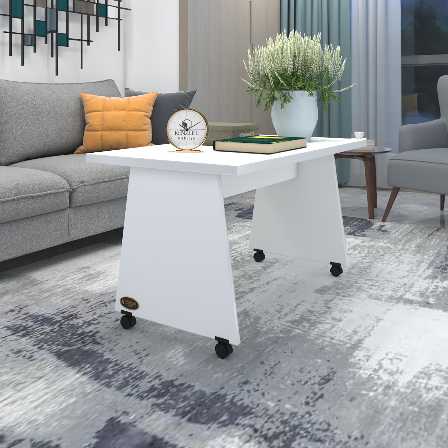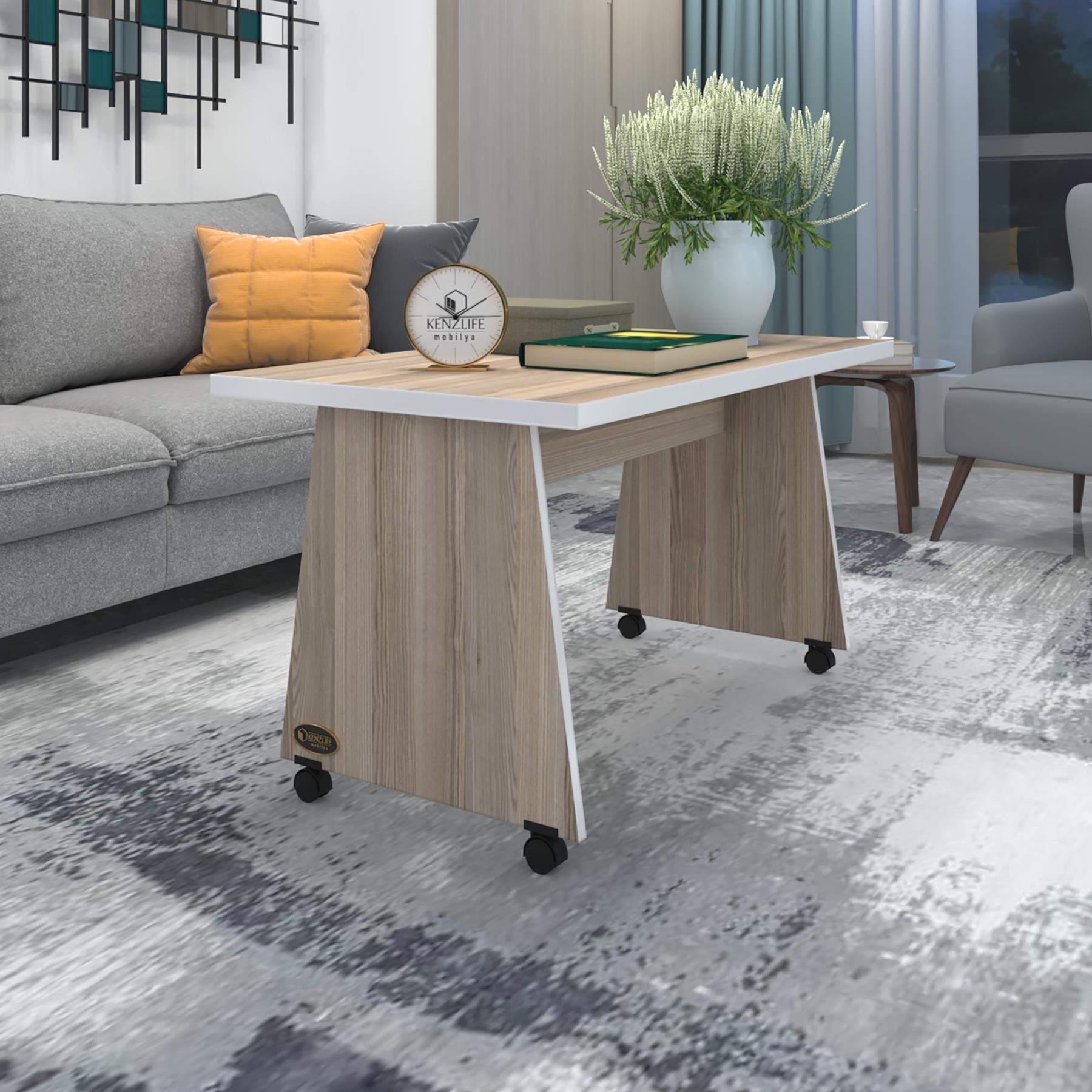 Kenzlife orta salon sehpası masası roma 045*090*60 crd tekerlekli yemek sofra bilgisayar
