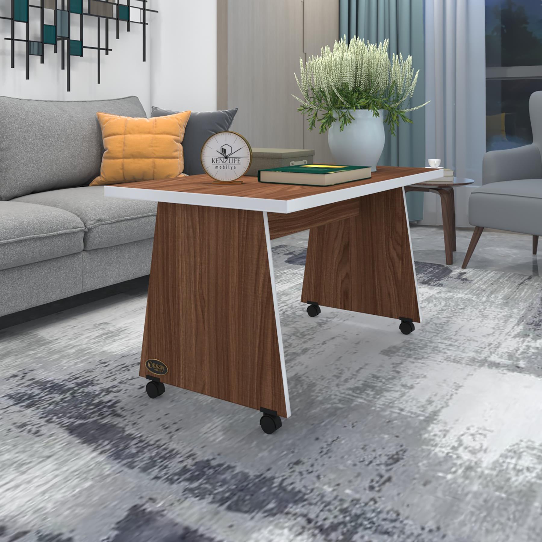 Kenzlife orta salon sehpası masası roma 045*090*60 cvz tekerlekli yemek sofra bilgisayar