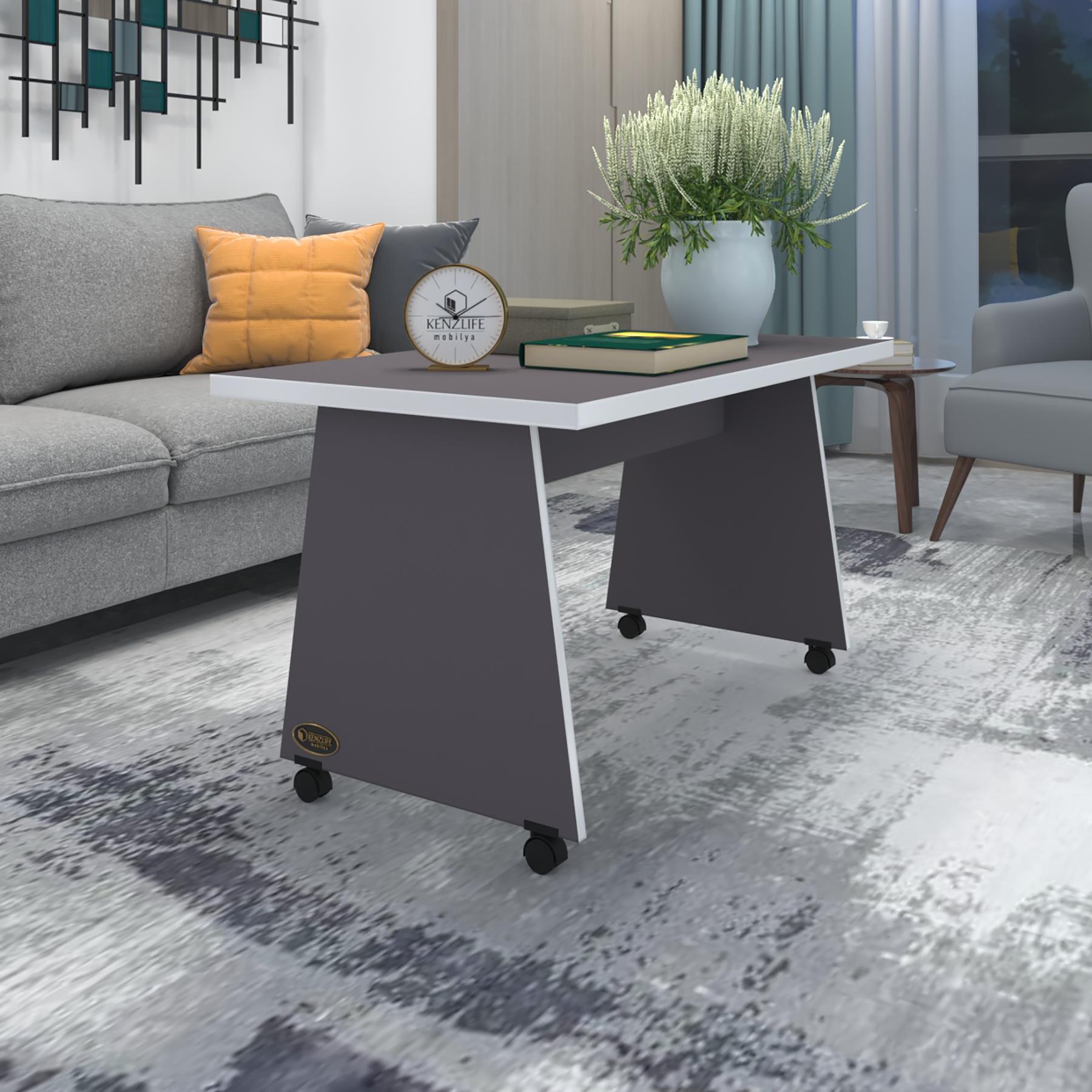 Kenzlife orta salon sehpası masası roma 045*090*60 gri tekerlekli yemek sofra bilgisayar