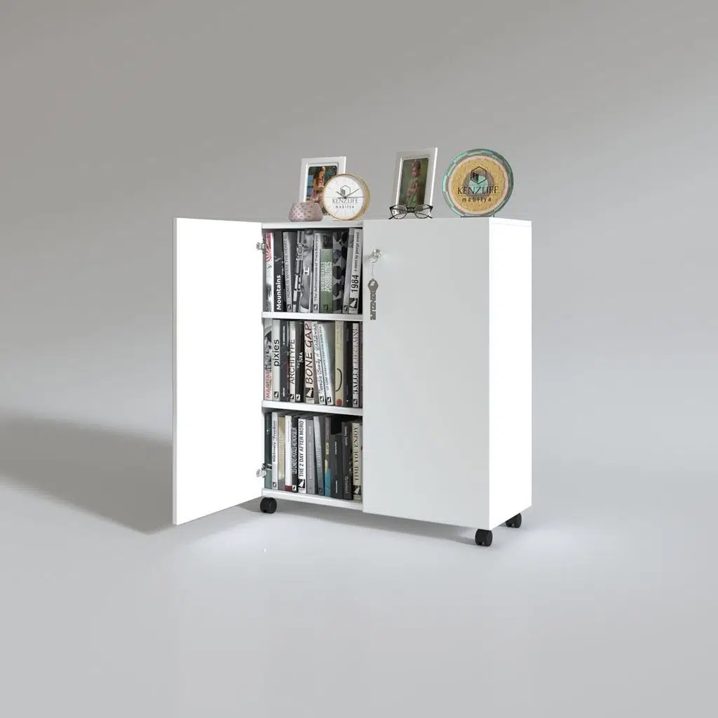 Kenzlife 2 kapılı dolap çilem 088*070*032 byz kilitli tekerlekli banyo mutfak ofis kitaplık ayakkabılık kiler
