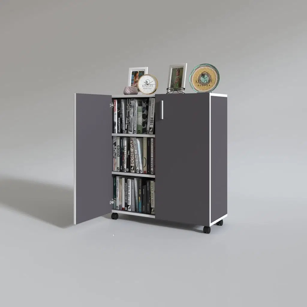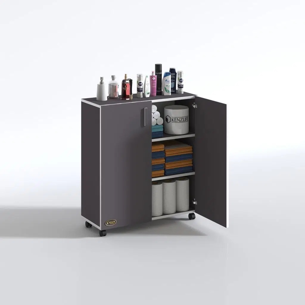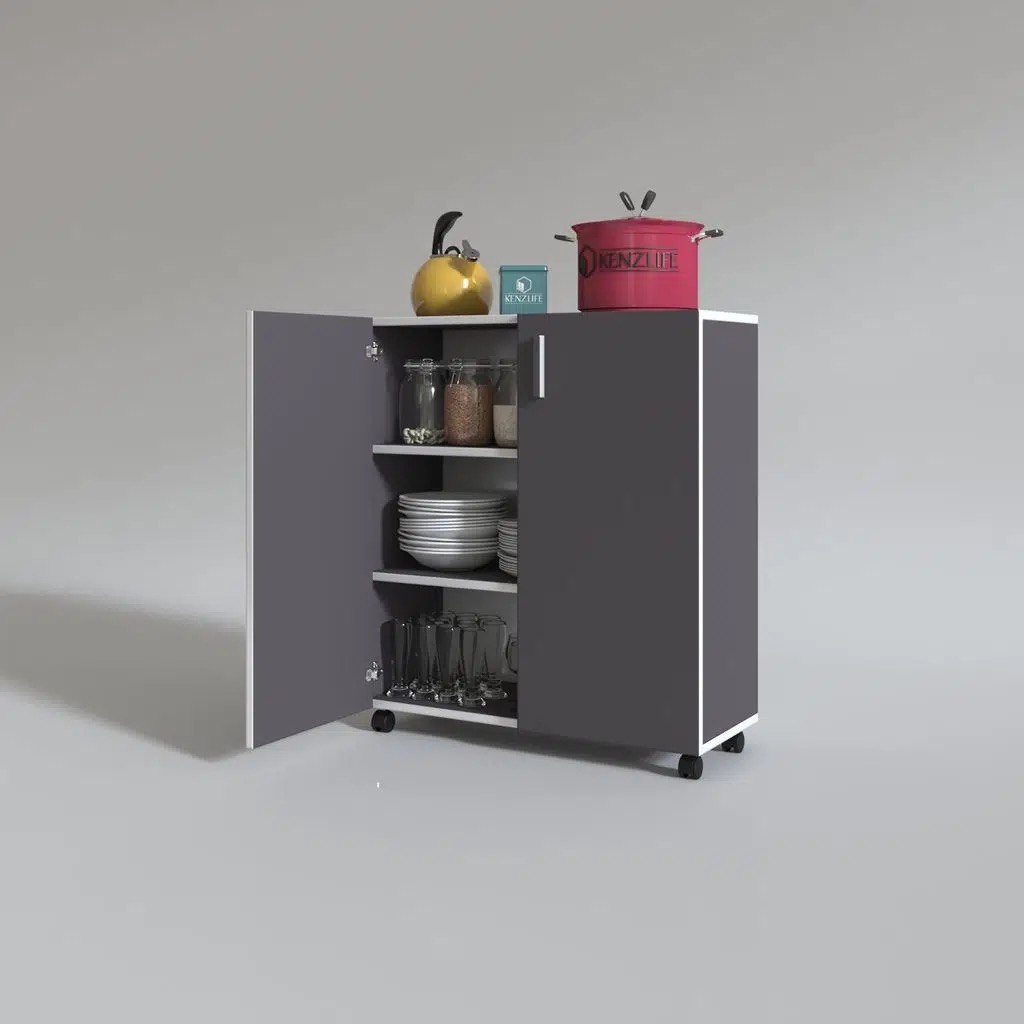 Kenzlife 2 kapılı dolap rabia 088*070*032 gri kapaklı tekerlekli banyo mutfak ofis kitaplık ayakkabılık kiler