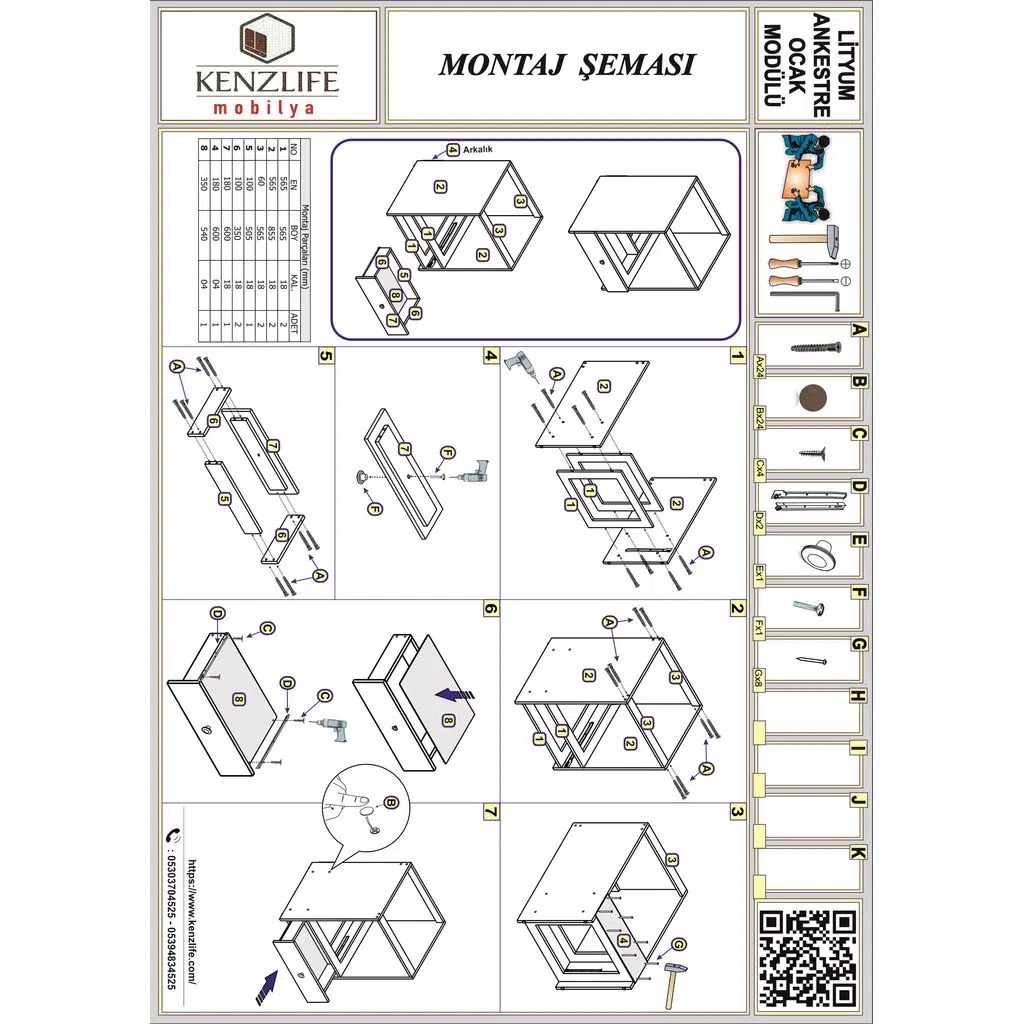Kenzlife ankastre modülü kabini lityum gri fırın ocak dolabı çekmeceli